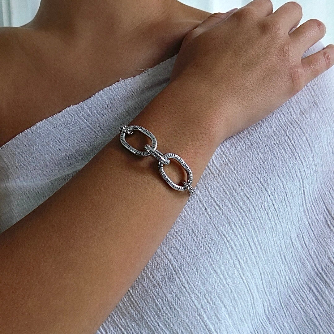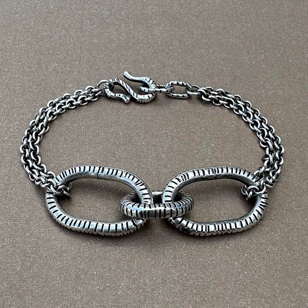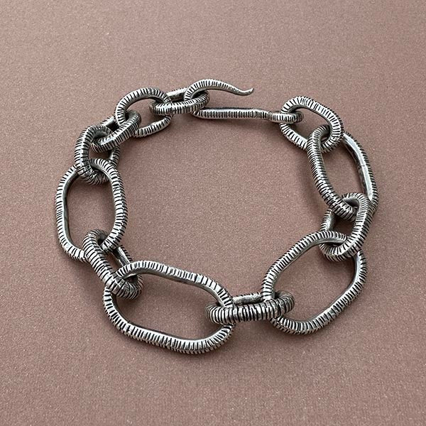 Each item is handmade and textured by Samantha Lombardo and is meant to serve as a representation of the links that are personal to each client. She is creating the jewelry, but you are ascribing the meaning to your piece. No two items are the same, much like the stories that are unique to each of us.